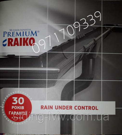 Райко Raiko металева водостічна система характеризується багато річністю. Покриття CreenCoat, оцинкування, сталь, пасивуючий шар, шар грунтовки.