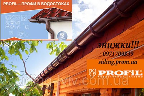 Водостічні системи Profil (Профіл) коричневий, білий, цегляний, графіт, червоний